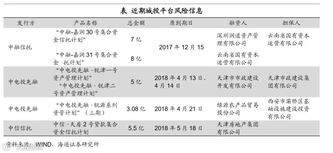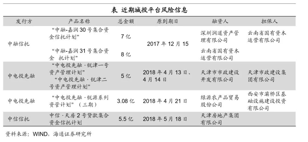 城投风险事件增多。今年已经有三起省级城投公司风险事件被曝光,包括年初被爆光的云南国有资本信托逾期事件,4月天津市政建设开发公司资管计划未能及时偿付本息, 5月天房集团即将到期的一期信托计划存在违约风险,此外近期还有一起城投违约事件,西安市灞桥区基础设施建设投资有限公司担保的一期资管计划到期未全部兑付,但因其没有在公开市场上融资,引起的关注比较少。