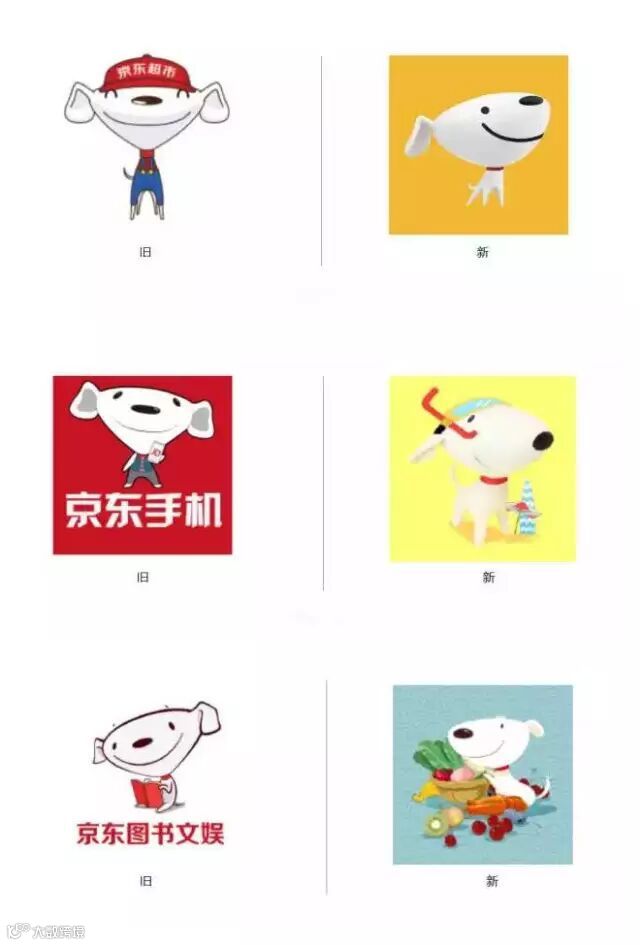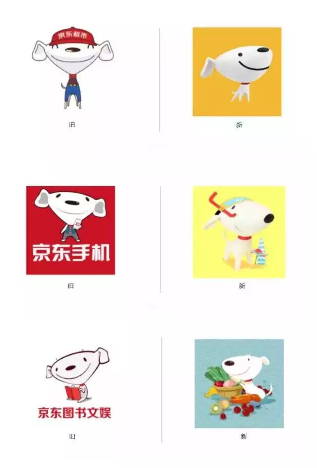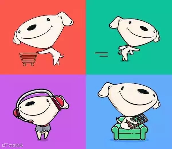 同时,logo 中,原来在小狗下方的域名「 JD.COM 」,现在也去掉了,只留下「京东」两个字,更加简洁明亮,增强吉祥物的延展性。毕竟京东已经不是一个普通的网上商城,移动端更是各大平台的必争之地。特别是这次京东吉祥物的变化,可以让品牌多出很多新玩法。