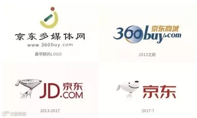 京东与 JOY 的感情也有 4 年了。早期京东的 logo 长这样,虽然有人说这是 5 毛钱特效既视感。