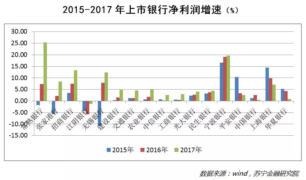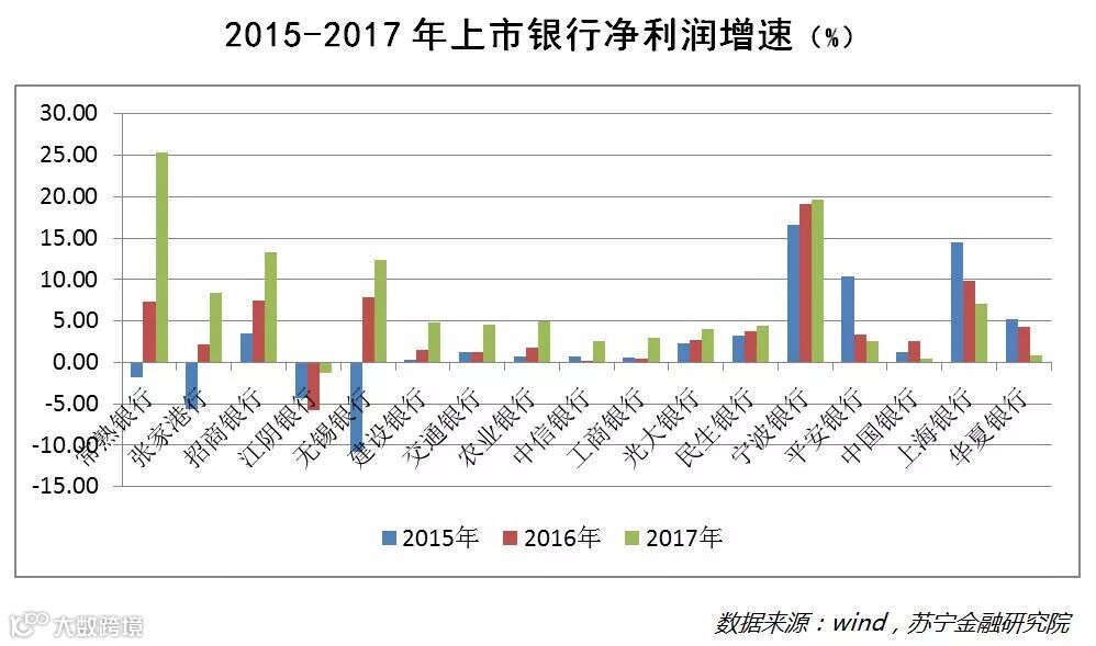 2017年,商业银行实现净利润1.75万亿元,同比增长5.99%,增速较2016年回升2.44个百分点。从上市银行看,2015-2017年,大多数银行的净利润增速都实现了三连升,向好的趋势基本确立。