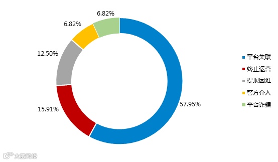 据网贷天眼研究院不完全统计,2018年4月,新增问题平台88家,主要以以失联问题为主,占比57.95%;其次为终止运营和提现困难问题平台,分别占比15.91%和12.50%,其它问题还涉及警方介入和平台诈骗,分别为6家。