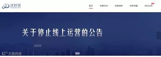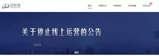 5月2日下午,江苏P2P平台沃时代在官网发布“关于停止线上运营的公告”,宣布从5月2日起,停止线上平台运营,不再发布借款标的,且新、老平台都将停止回款。