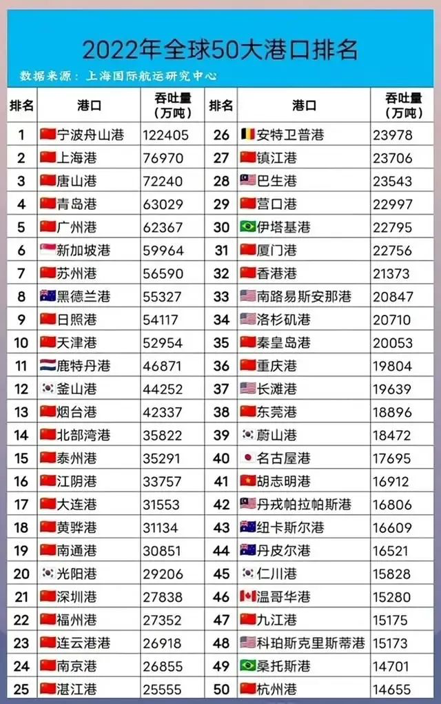 从规模上讲,在世界排名前十的港口当中,中国占有八席。