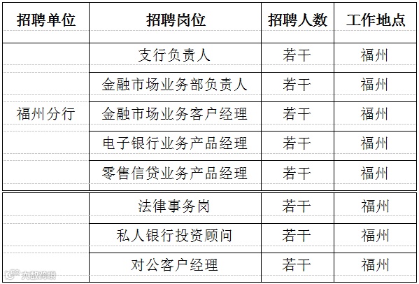 应聘要求:40 周岁以下;全日制大学本科及以上学历;具有 3 年及以上的银行业、信托、证券、基金、保险等金融机构工作经验;具有较强的市场拓展能力及丰富的客户资源,能迅速打开局面,开展工作;具备较强的组织领导、协调能力以及较高的风险防范意识。