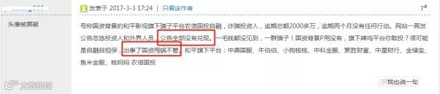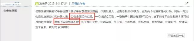 除此之外,金投行频频被投诉。2017年2月,有用户在网贷天眼发布标题为“你们真的是国资系吗?”、“杭州伪国资金投行期限投资人”等投诉贴,而类似负面新闻在百度中搜索也随处可见。