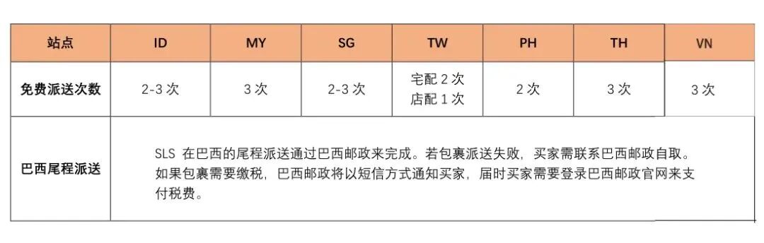 另外给大家补充一下shopee对于各个炸点市场的免费尾程派送规则: