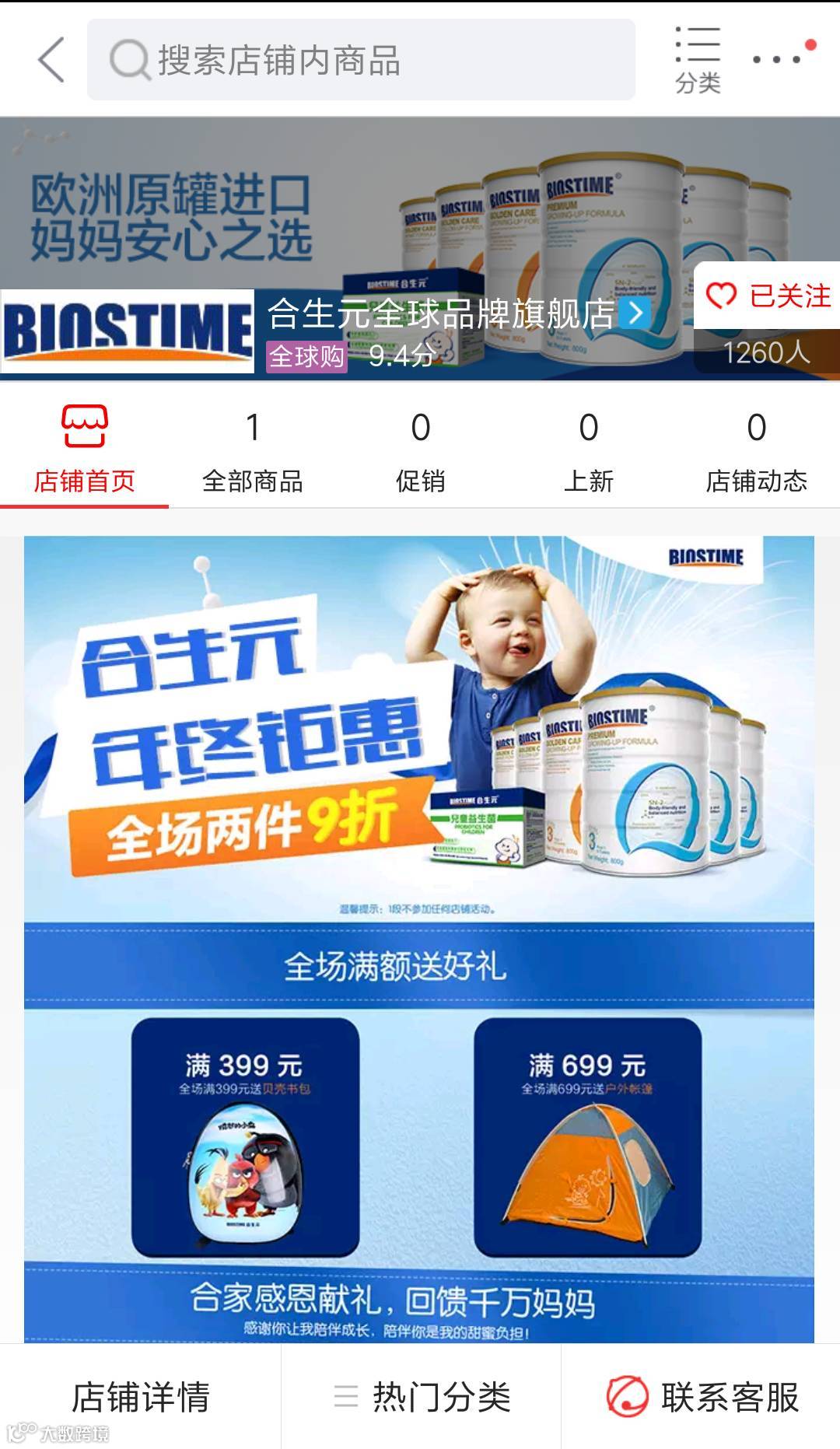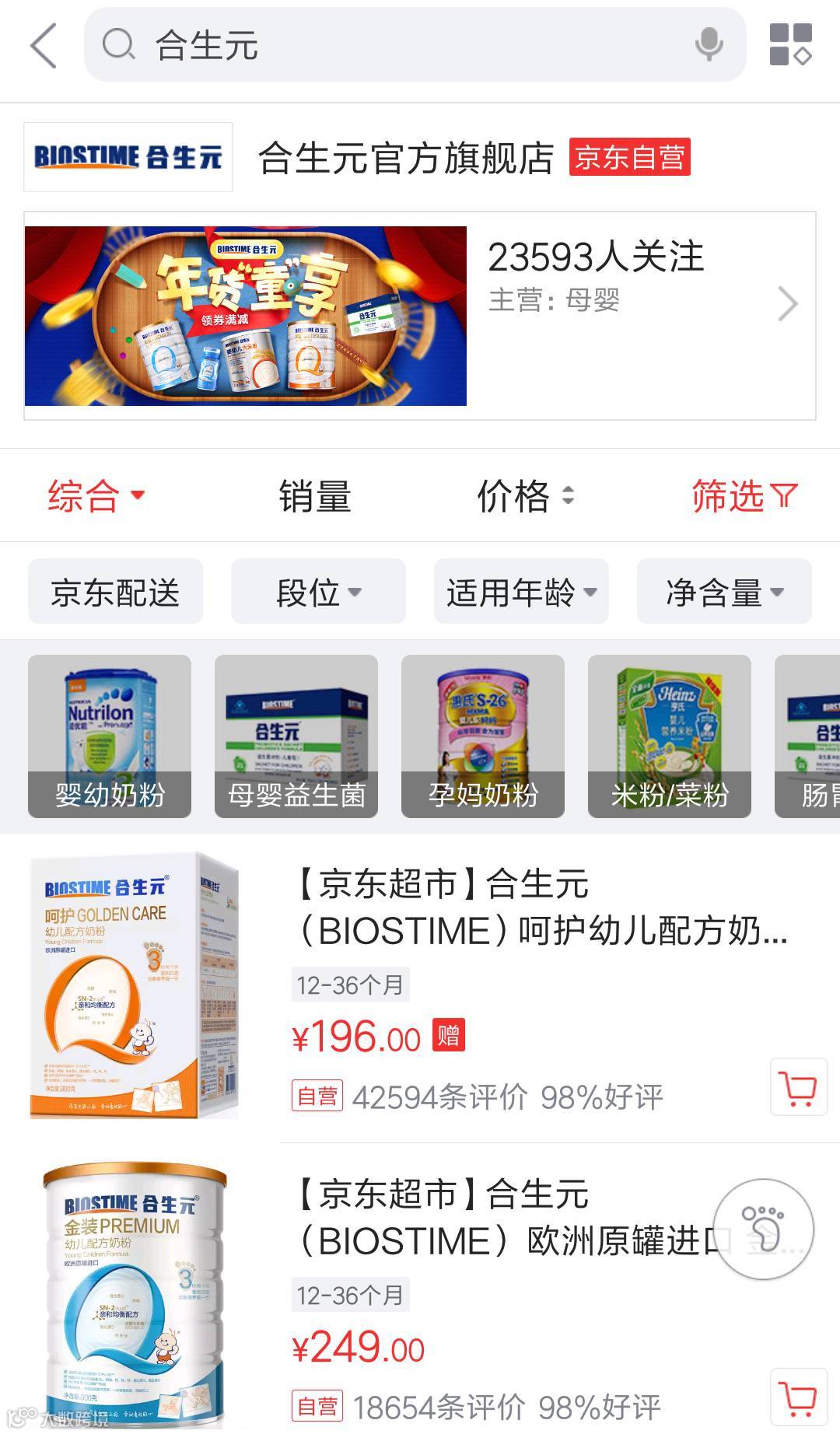手机京东APP端合生元全球品牌旗舰店店铺首页
