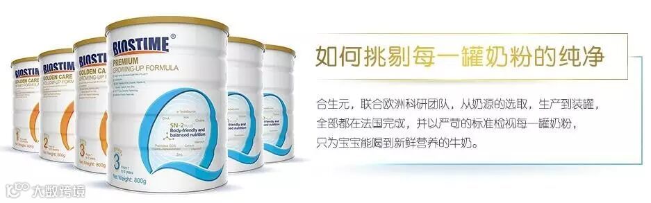 合生元,联合欧洲科研团队,从奶源的选取、生产到装罐,全部都在法国完成,并以严苟的标准检视每一罐奶粉,只为陪伴宝宝健康成长。