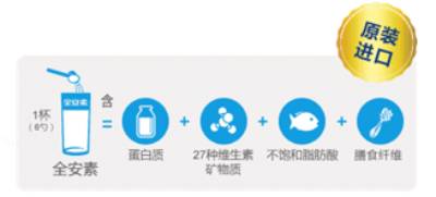 另外还有一款老少皆宜的全营养全健康产品——雅培安全素,彻底解决因口感、口味、个人喜恶、食用方式等因素不能得到全营养补充的问题。