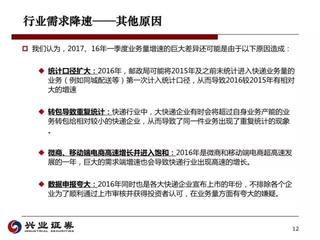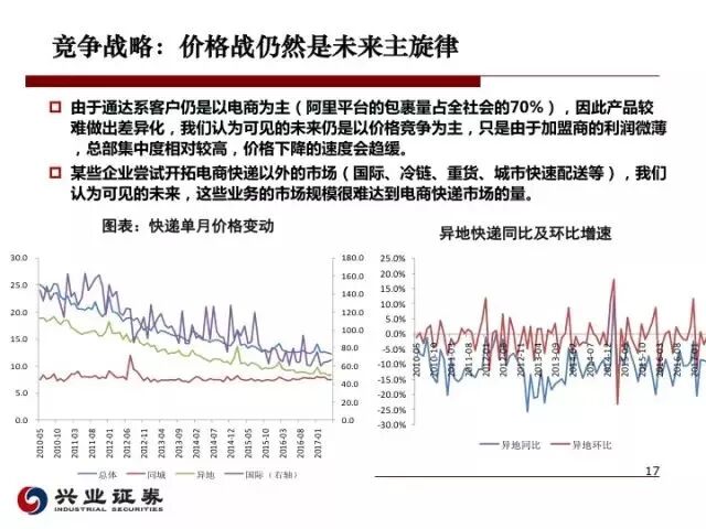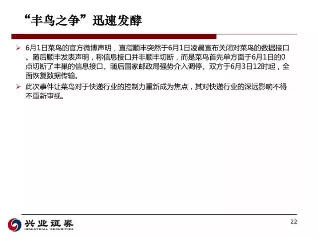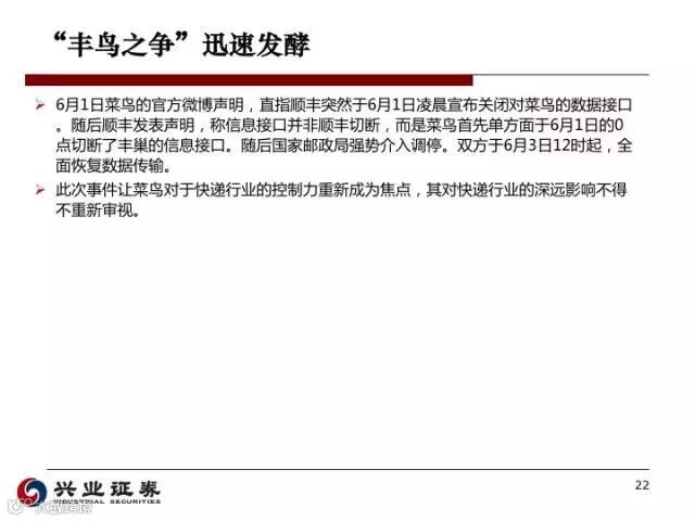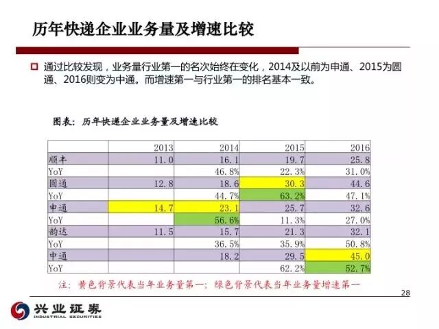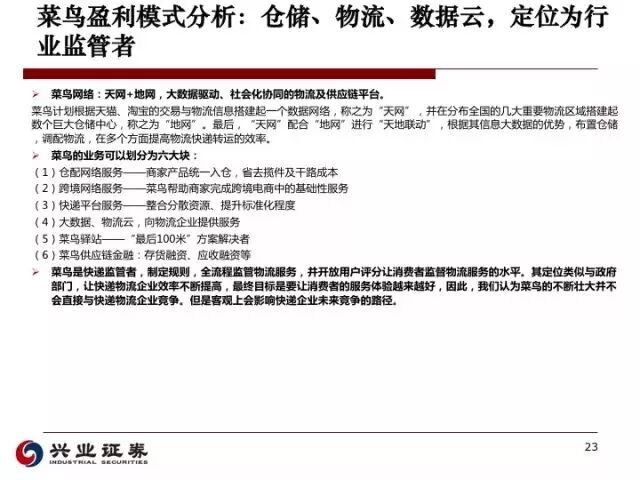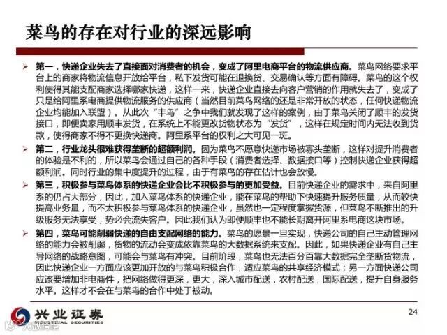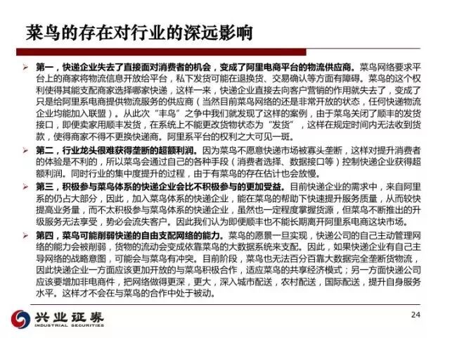 本文从行业空间与增速展望;竞争格局与竞争战略;菜鸟对行业的深远影响;快递企业之间的比较4个角度分析快递企业龙头之争。