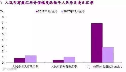 从2017年全年数据来看,人民币升值6%的结果,是进口增速在大大提升,全年达到了15.9%。而出口情况来看,全年增速才7.9%。贸易顺差增速下滑17%。