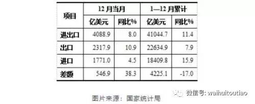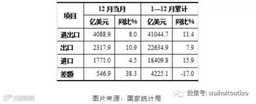 我们来看看,2017年12月的进出口情况就非常明显。