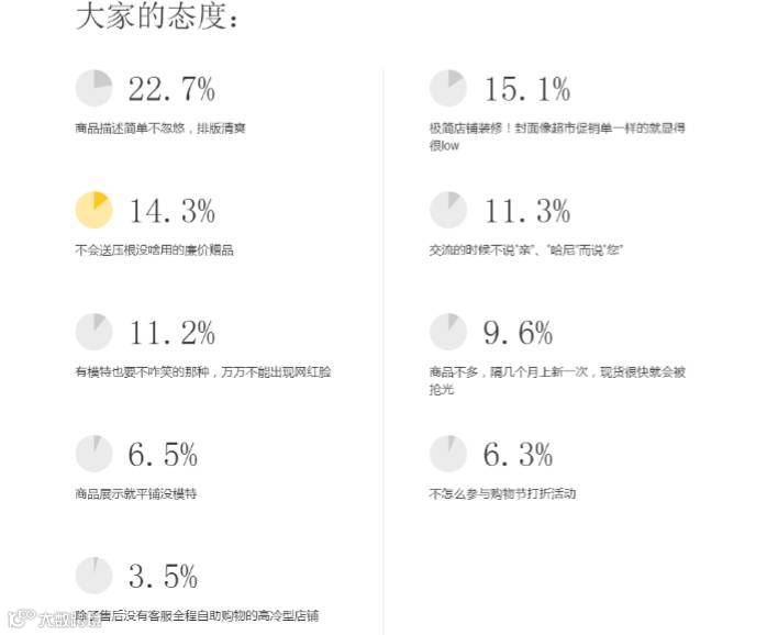 在《好奇心日报》里,我看到有一个关于“哪种淘宝店铺会给你体面而值得信赖的感觉”的调研,觉得很有味道,就顺手拎来送给你们,虽然这个调研并没有直接指向运营,但毋庸置疑是店铺运营好坏的关键因素之一。