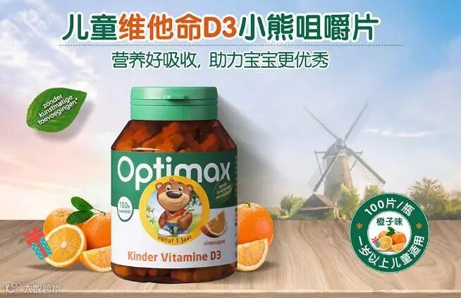 是一种特殊的维生素,帮助钙的吸收,能有效地促进骨钙化,促进成骨。北方的冬天时间长、日照时间短,维生素D不能在紫外线照射下发生变化而供人体使用,在北方生活的年轻父母亲更应及时地给小儿补充维生素D,并多晒太阳,让孩子骨骼健康生长。Optimax儿童维他命D3小熊咀嚼片,补充维生素D,营养好吸收,助力宝宝更优秀。