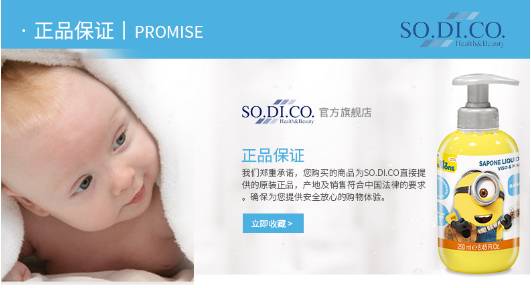 SO.SDI.CO.约于20年前于意大利的Senigallia创立,至今行销世界多国,涵盖了婴幼儿清洁护理,头发清洁护理,沐浴清洁,牙齿护理,身体保湿,香皂类,香水类,礼品类等超过500项个人清洁护理产品。SO.SDI.CO.于2012年成立卡通授权部门,到2015年已经获得包括迪士尼等多家著名授权商授权,制造百余种儿童清洁护理产品。