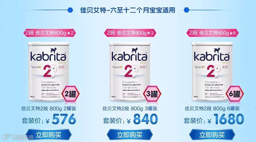 佳贝艾特2段 3罐装原价840,现价798 6罐装原价1680 , 现价1596