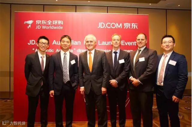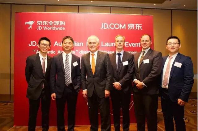 【2015年6月京东全球购澳大利亚招商会上京东集团与澳大利亚联邦总理(时任澳大利亚通讯部长)MalcolmTurnbull及澳方代表合影】