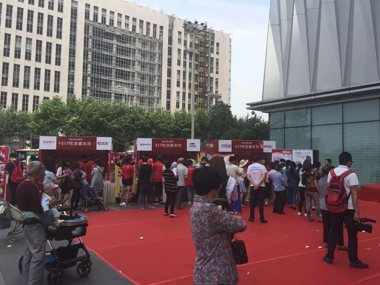 5月13日上午,在成都金牛万达广场,“京东517吃货节“为期3天的线下推广活动火热开启,活动一开始就引起众多群众的参与,场面甚是火爆。