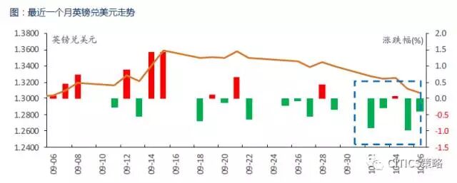 受政治风波影响,本周英镑承压大跌。因英国首相特雷莎·梅控制领导地位的不确定性不断增加,且美国强劲的经济数据提振美元,本周英镑一路承压下行。周五(10.6)跌至四周最低,收于1.3069,日跌幅0.38%,周跌幅达2.45%,创年内表现最差的一周。