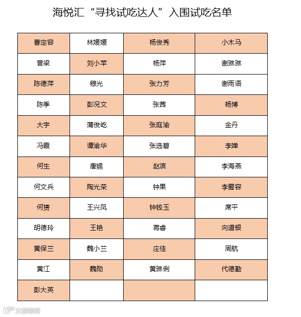 上一期参加海悦汇“寻找吃货达人”巧克力试吃活动的朋友们,试吃名单已公布。