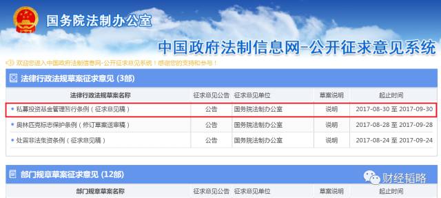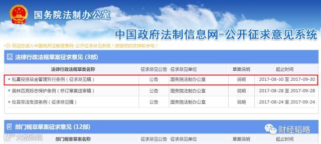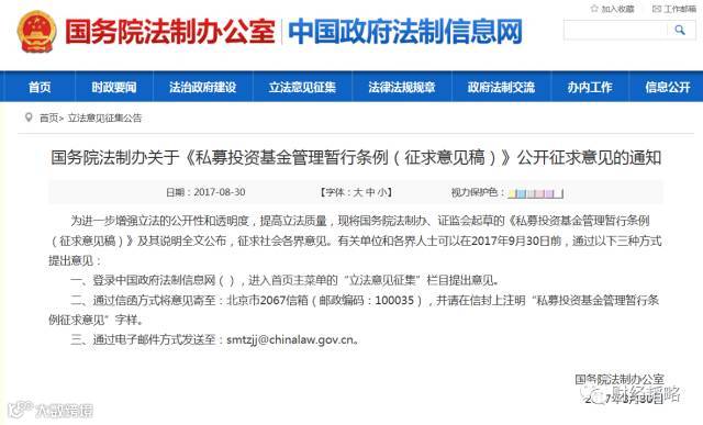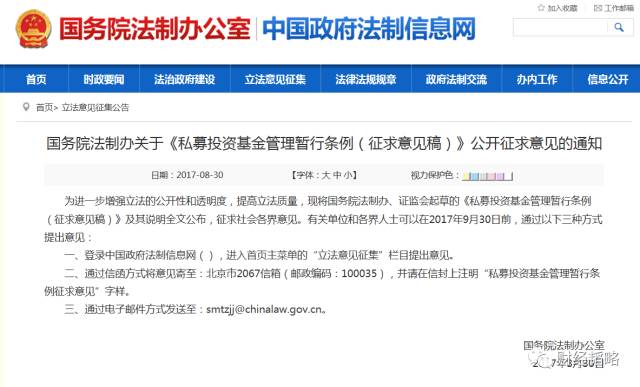 8月30日晚21点,国务院法制办公室在其官网发布关于《私募投资基金管理暂行条例(征求意见稿)》。