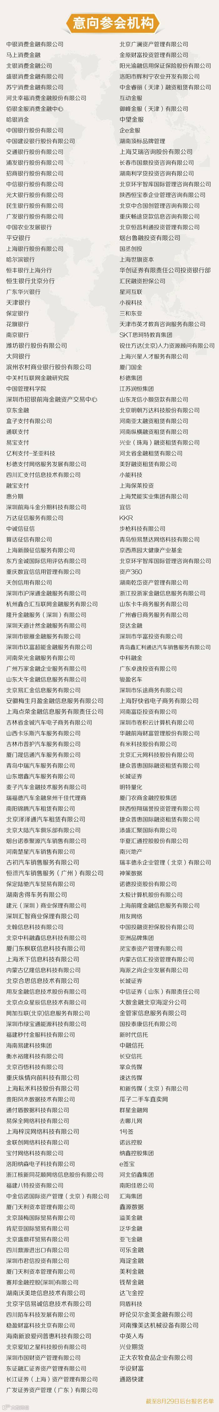 2017中国消费金融年会即将召开(部分企业名单更新至8月29日)欢迎关注