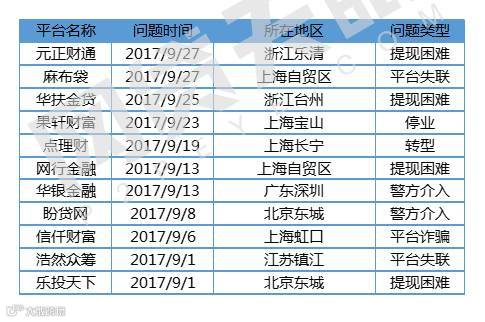 9月新增部分问题平台名单