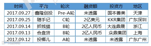 9月融资平台名单