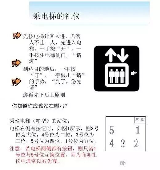 5. 旅行车接送客人:旅行车以司机座后第一排,即前排为尊,后排依次为小。其座位的尊卑,依每排右侧往左侧递减。