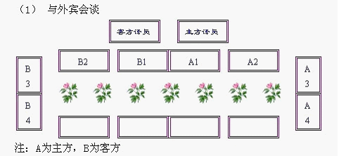 领导为偶数时,1、2号领导同时居中,2号领导依然在1号领导左手位置,3号领导依然在1号领导右手位置。可参见下图的座次排列图: