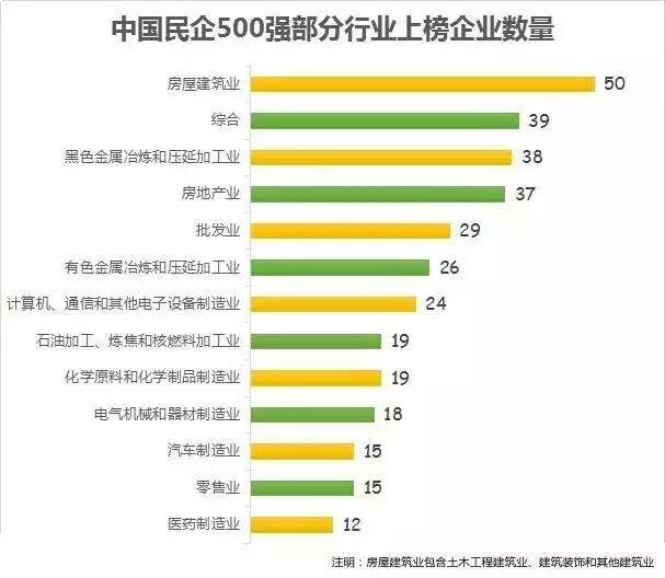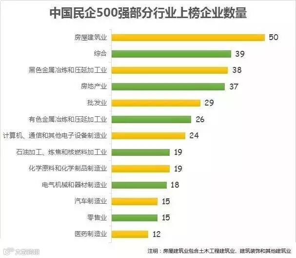 查看近几年榜单,第二产业入围企业连续5年下降,而第三产业入围企业连续5年上升,从2012年的117家增至2016年154家。不过,500强民企中,制造业仍占主体,入围企业285家,相较去年减少6家,占比57%。