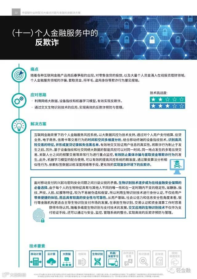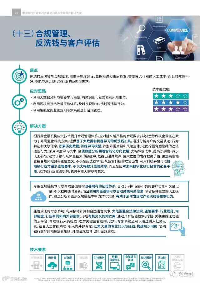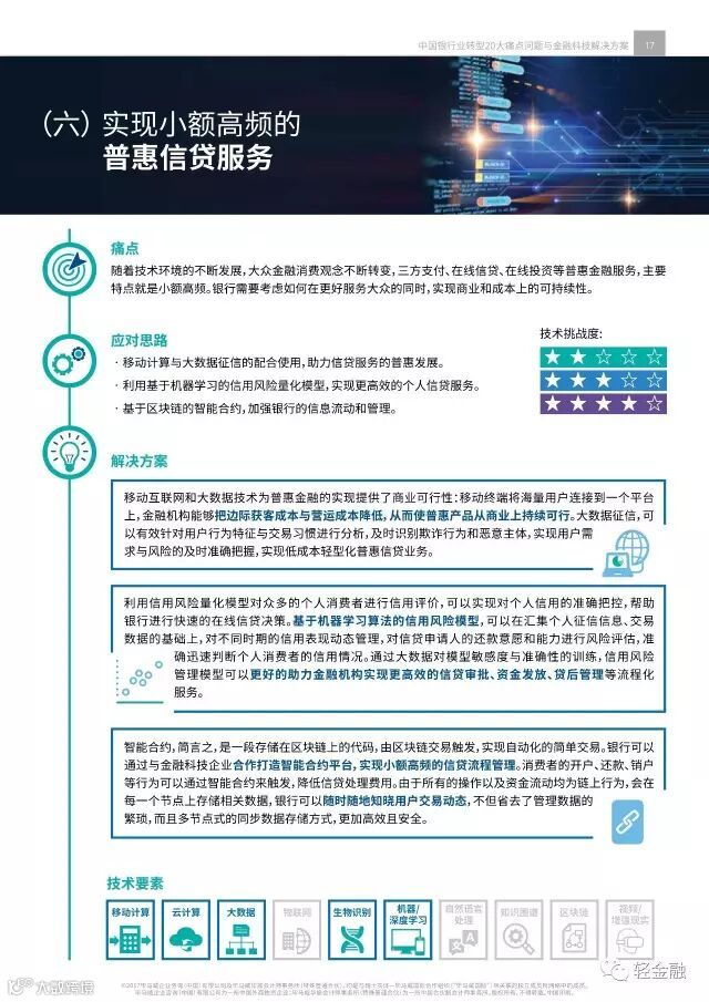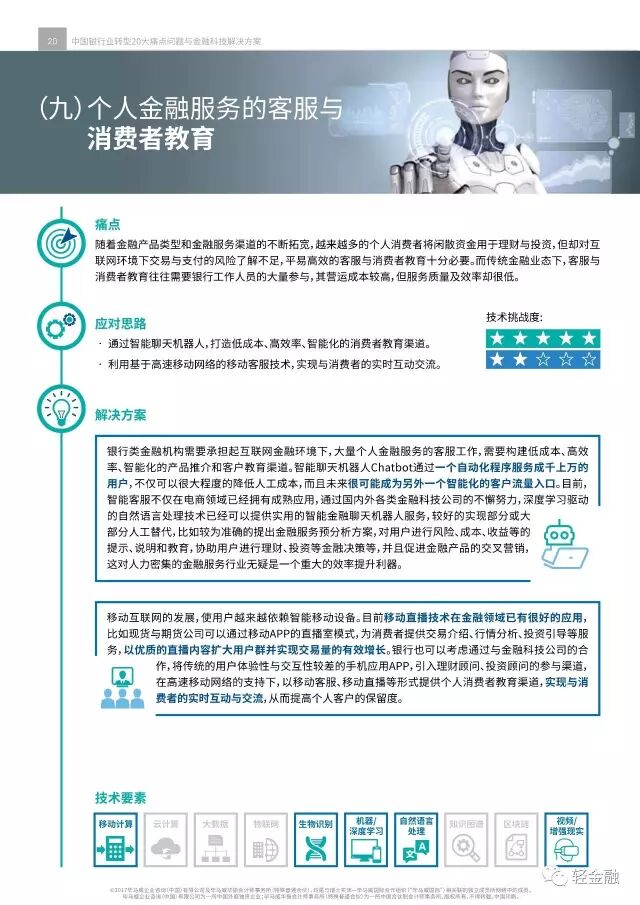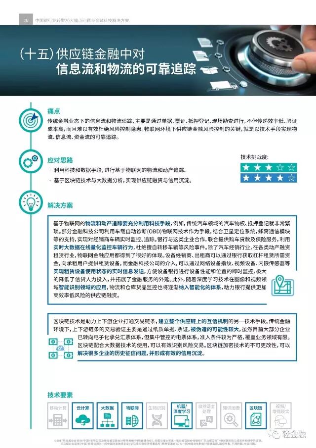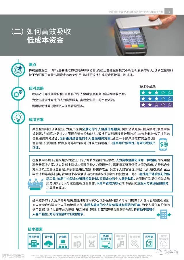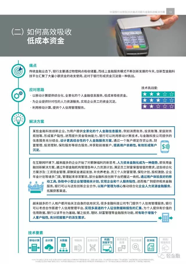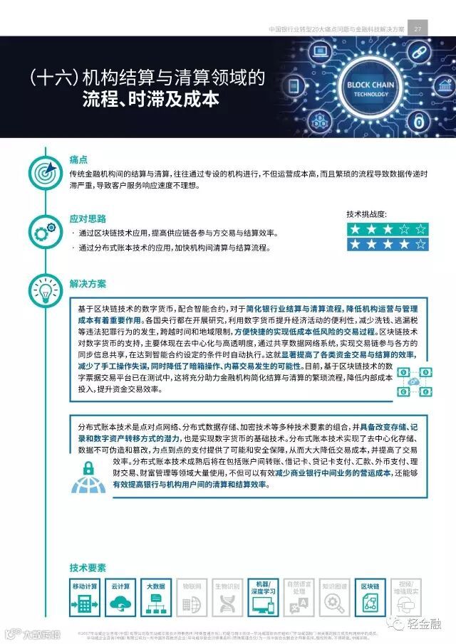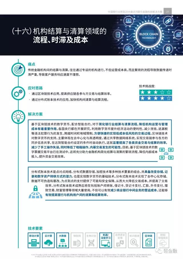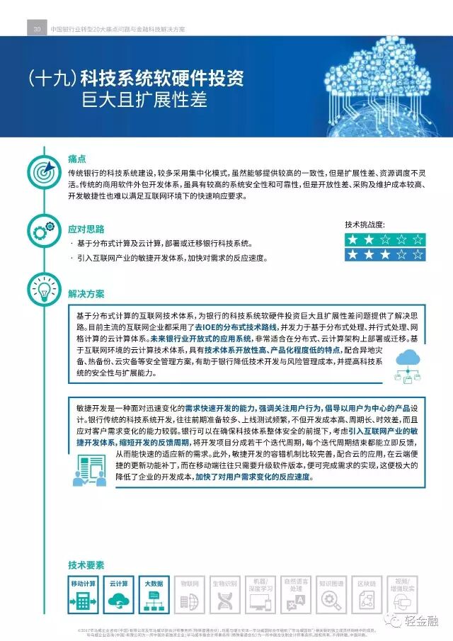 近日,毕马威发布《中国银行业转型20大痛点问题与金融科技解决方案》报告,从银行业商业经营中所面对的20大行业共性痛点问题出发,总结了金融科技业态对这些痛点的创新应对思路与落地实施方案。