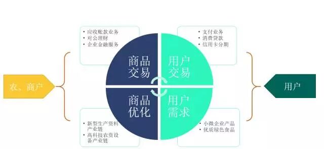 2. 区域性金融企业目前的电子商城(销售端)由于其金融机构的定位在运营、仓储、物流等方面能力缺失,这些现实条件的制约使得电子商城本身就不应该在电商领域同专业电商竞争,而应该结合对行内用户群体的运营逐步引入具有独立运营能力的小微企业入驻银行的金融平台。核心是将小微企业和个人用本行提供的金融服务融合起来,从而形成两部分业务相互促进的协同效应,增强对小微企业和对个人的粘性。(详见后文的论述)