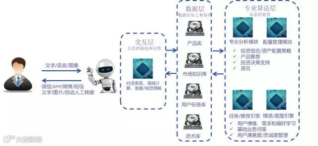 目前主流的智能投顾/智能客服分成两种:对话机器人型、资产配置/金融产品建议型,由于智能投顾/智能客服在交互层的形式比较新颖有趣,也看到一些金融机构将智能机器人作为社交媒体上引流、品牌宣传的一种方式。