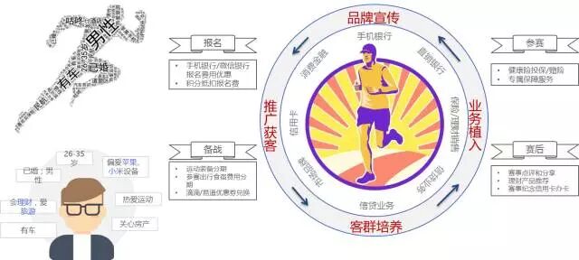 比如:某城商行利用直销银行线上化服务的优势,推出了从报名优惠、参赛指引、选手服务、集勋章等一系列的运营活动,用趣味性、实用性兼备的方式,在马拉松运动人群的持续运营上做出了创新突破。