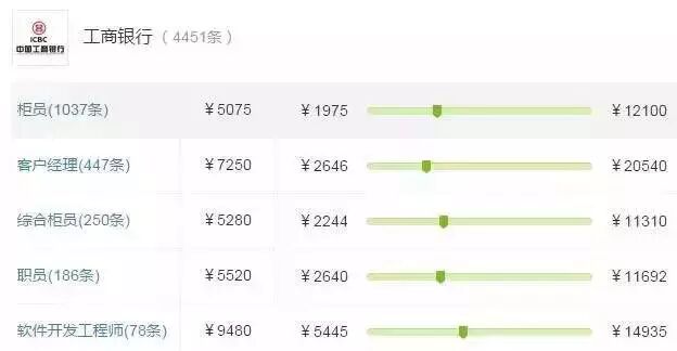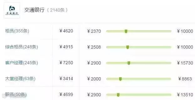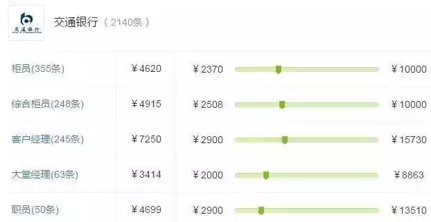 来看一看中国银行、农业银行、工商银行、建设银行、交通银行这五家国有商业银行的全国平均薪资:
