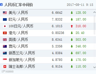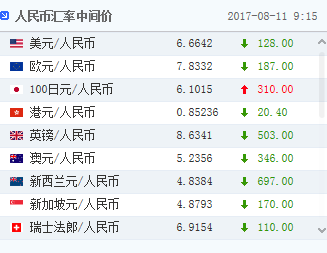 央视网8月11日消息(新闻联播):中国外汇交易中心数据显示,今天人民币对美元中间价连续第四天上调,创11个月新高,近期人民币对美元汇率呈现出持续升值走势。