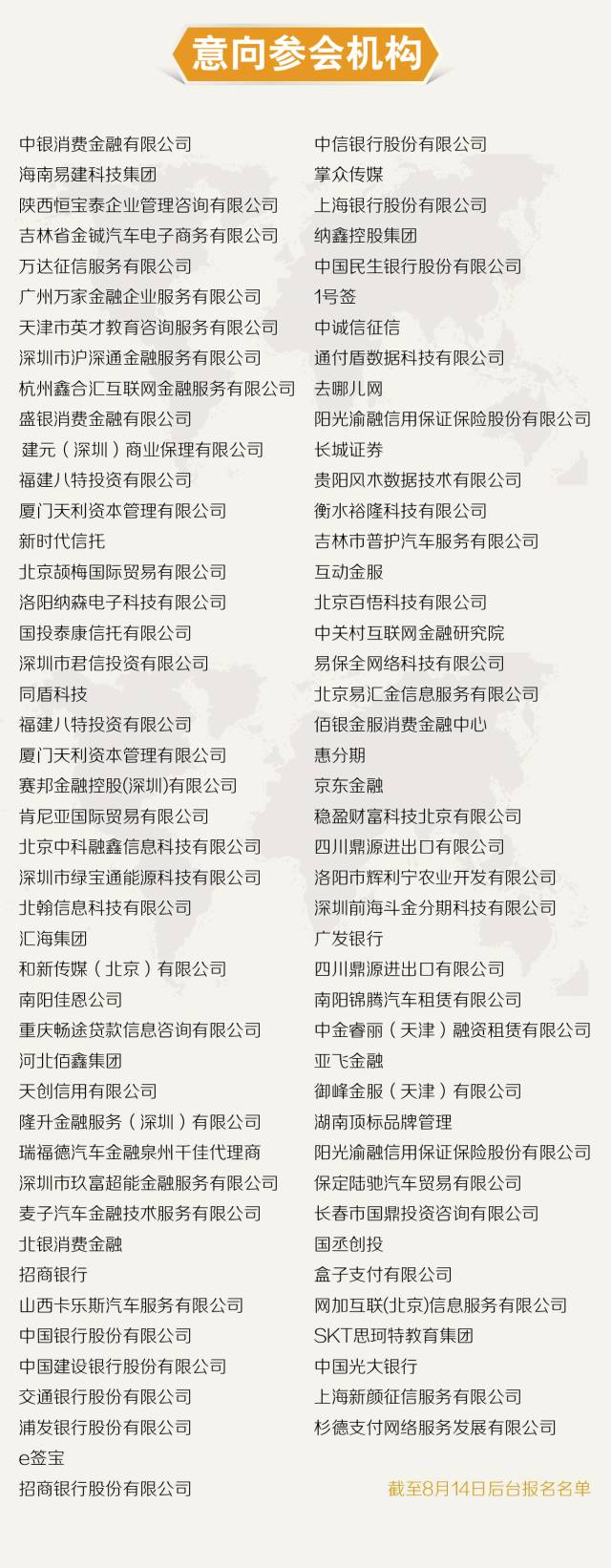 2017中国消费金融年会即将召开(部分企业名单更新至8月14日)欢迎关注