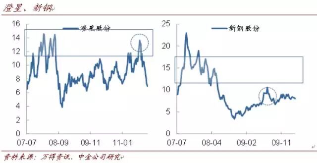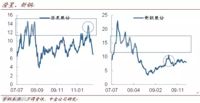 新钢转债(09年7月):同样是未能触发赎回的案例。在确定无缘南昌钢铁重组之后,该公司看点不多。当时来看,股价P/B仅在1.3倍左右,吨钢市值位于行业底部,有一定防御性。但可惜的是,防御性有余而进攻性明显不足。与澄星转债类似地,新钢在股价上有明显的阻力位(更准确地说,甚至没有明显摆脱下行趋势);