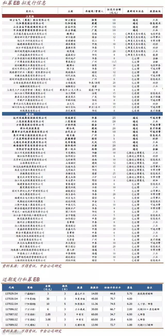 上周新增5个私募EB发行预案: