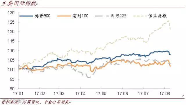 4、结构上看,周期剧震、一线白马重挫,下一个热点会在哪里?我们在6月下旬着重分析中报,并将其作为当时市场主线的关键线索,事后来看收效不错。往后看,几个值得关注的方向:1)主流题材的重新活跃,例如上周一些雄安股又获得机构买入,除雄安外,国企改革、人民币升值等也值得关注;2)地缘冲突不断的情况下,军工是受益标的,但成分股普遍业绩一般、估值高。除军工外,黄金股间接受益;3)滞涨的涨价标的,如上周的二线食品股、水泥股等;4)TMT近期好消息偏多,包括iPhone8即将上市、个别国产电影票房惊人(利好传媒股)。从盘面上看,不少“创蓝筹”也有异动,其中不乏估值已然合理、此前因板块整体低迷而被错杀的品种,理应提高关注。