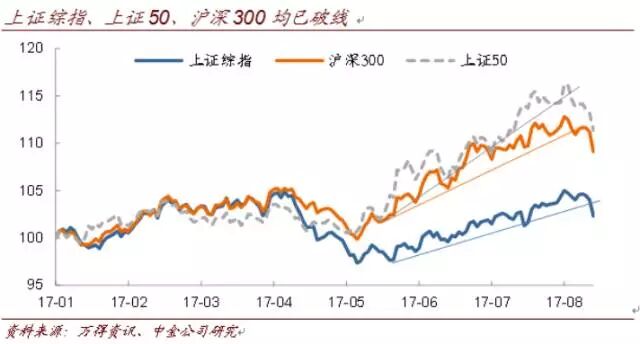 2、6月开始形成的震荡上行趋势,上周已经被打破。无论看股指、沪深300还是上证50,都已经出现了明显的破位。当然类似的现象在7月中旬也出现过,不过当时在种种力量的支撑之下,市场重回上行轨道。但操作上显然不能每一次将希望寄托在维稳上,毕竟风险还是由投资者承担。