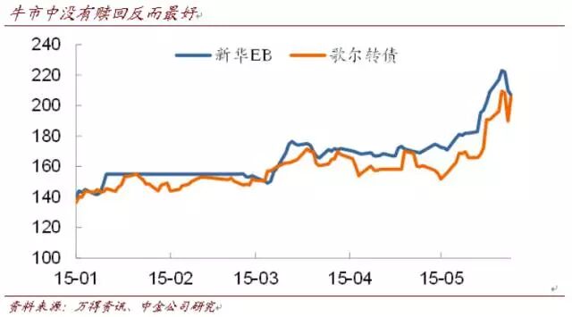 总体来说,转债在牛市冲关是大概率事件,不过往往此时投资者的忧虑其实不全在能否触发赎回,而是是否能够“拿住”券,例如15年时没有赎回条款的新华EB以及没有进入转股期的若干次新券才是最受青睐的品种。