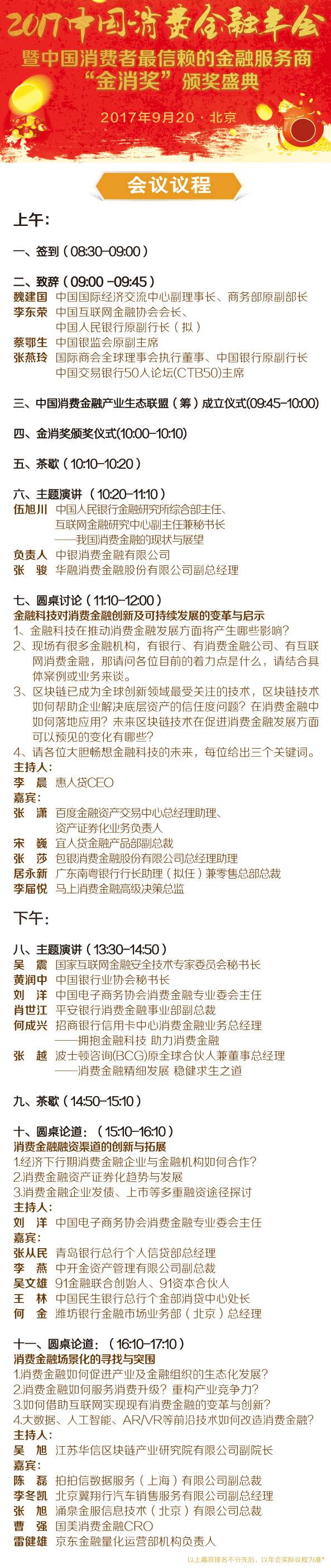 2017中国消费金融年会即将召开(议程及部分企业名单更新至9月13日)欢迎关注