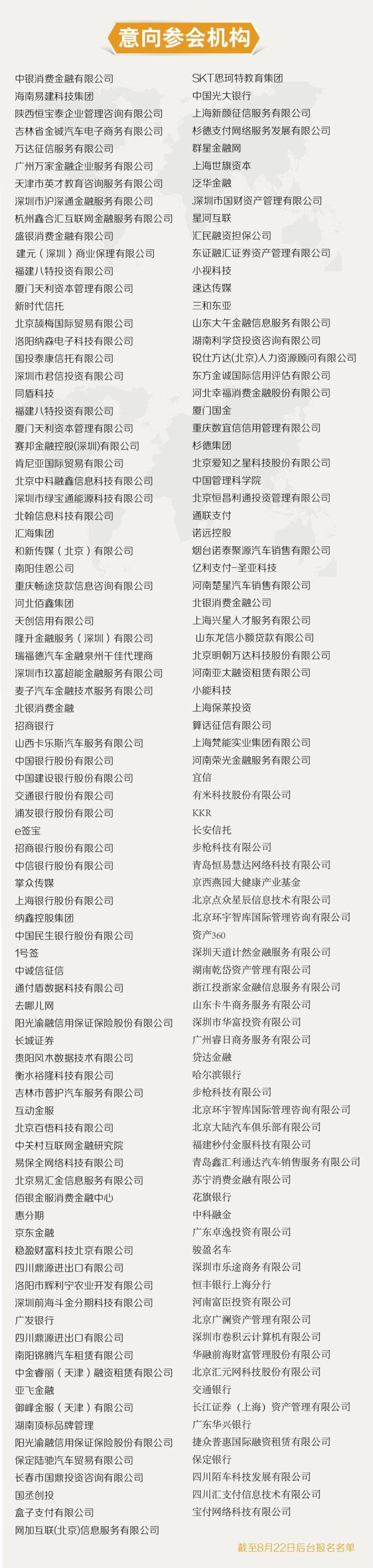 2017中国消费金融年会即将召开(部分企业名单更新至8月22日)欢迎关注