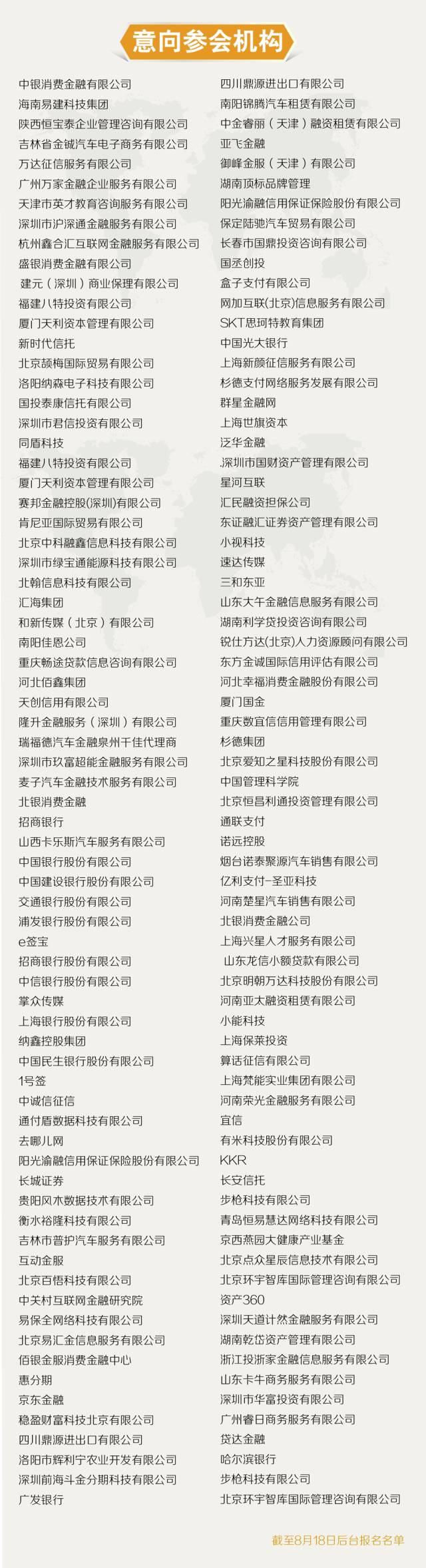 2017中国消费金融年会即将召开(部分企业名单更新至8月18日)欢迎关注