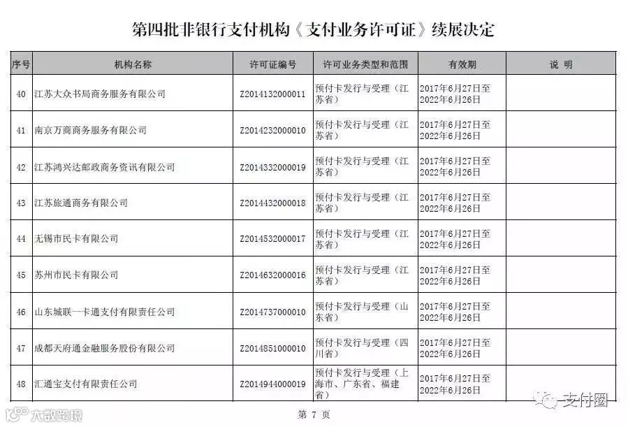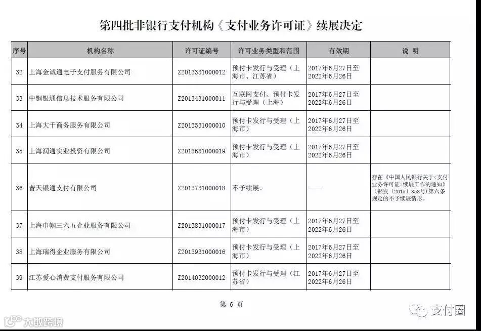 1、普天银通支付有限公司,不予续展。