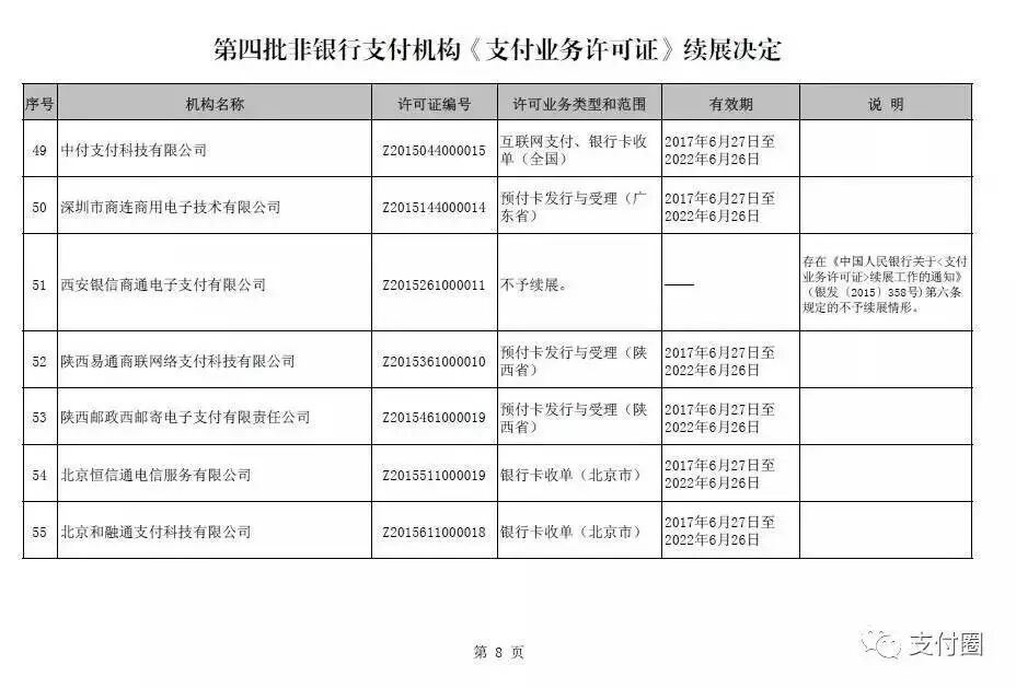 2、 西安银信商通电子支付有限公司,不予续展。