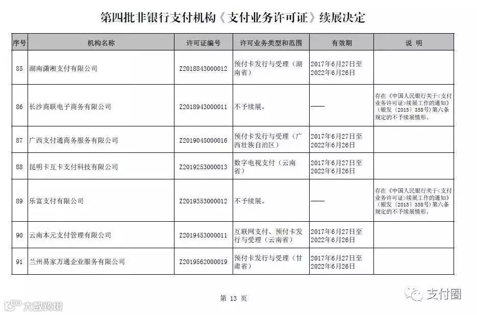 9、 乐富支付有限公司,不予续展。