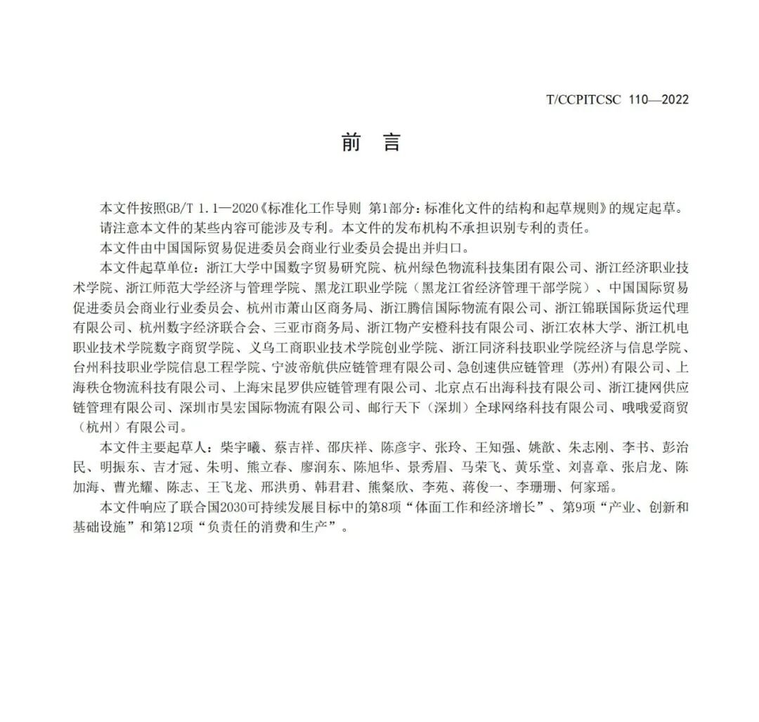 本次团体标准项目《跨境电商海外仓运营管理规范》(T/CCPITCSC 110—2022)(以下简称《规范》),是由浙江大学中国数字贸易研究院牵头制定,中国国际贸易促进委员会商业行业委员会立项管理,杭州绿色物流科技集团有限公司、邮行天下(深圳)全球网络科技有限公司、哦哦爱商贸(杭州)有限公司等作为起草单位联合起草发布的,《规范》的起草制定充分吸收了跨境电商海外仓企业、跨境电商物流服务商、跨境电商平台企业等业内有代表性的企业好的做法和意见建议。